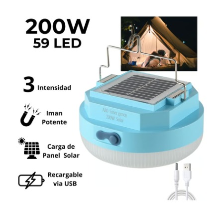 Prepara tu Kit de Emergencia y prevee cortes de energía, realiza ventas ambulantes, camping y muchas actividades más, llevando esta lámpara recargable para proveer de luz a cualquier ambiente, dentro y fuera de tu hogar siempre tendrás una gran iluminación con nuestros focos con 2 tipos de carga: recargables con rayos solares o por cable usb tipo C fast charger.