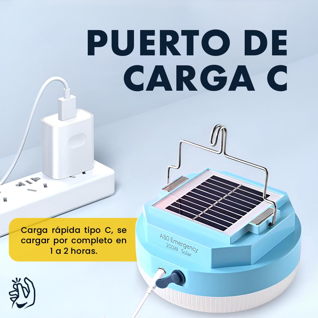 Lámpara Led Portátil Foco Recargable 200W 2 Modos de carga: Solar y por Cable Usb Tipo C